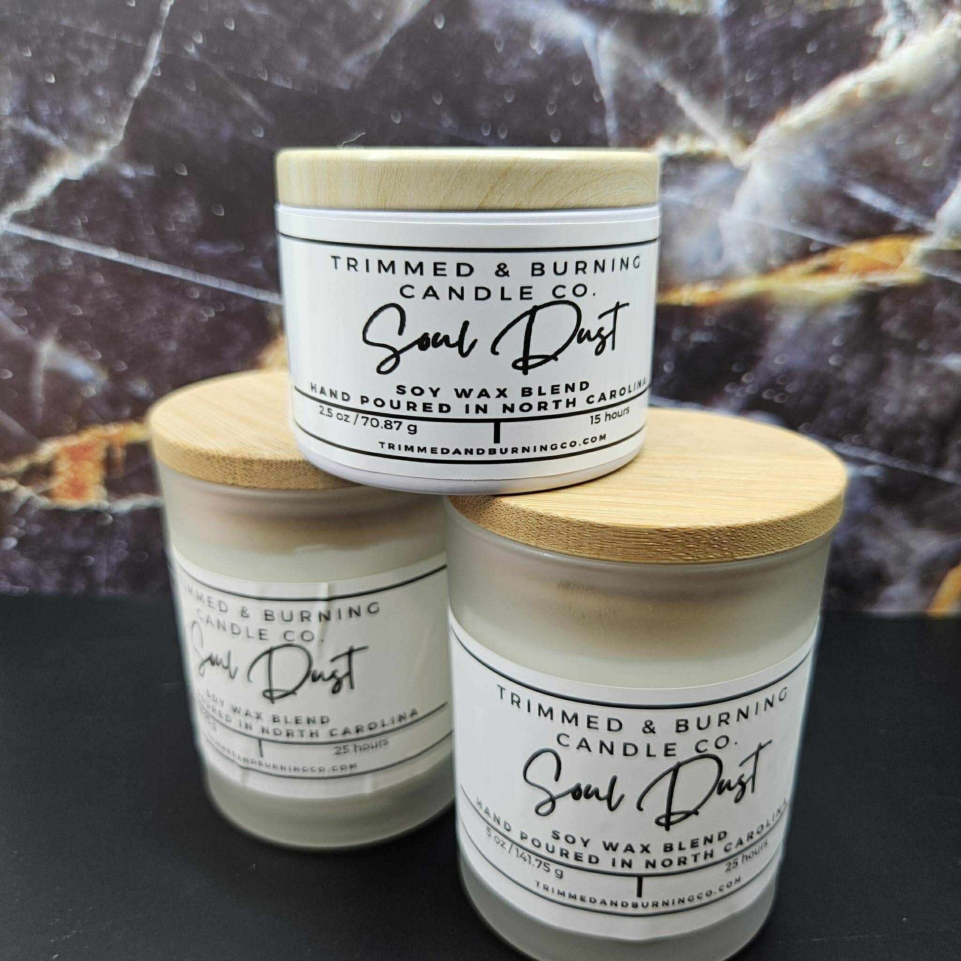 Soul Dust is where warmth meets mystery—an intoxicating blend of amber, sandalwood, and tonka that fills the air with smooth depth and quiet power. It’s soft but commanding, glowing like golden light on skin. The scent lingers long after the flame is gone, wrapping the room in something sacred, sensual, and still.